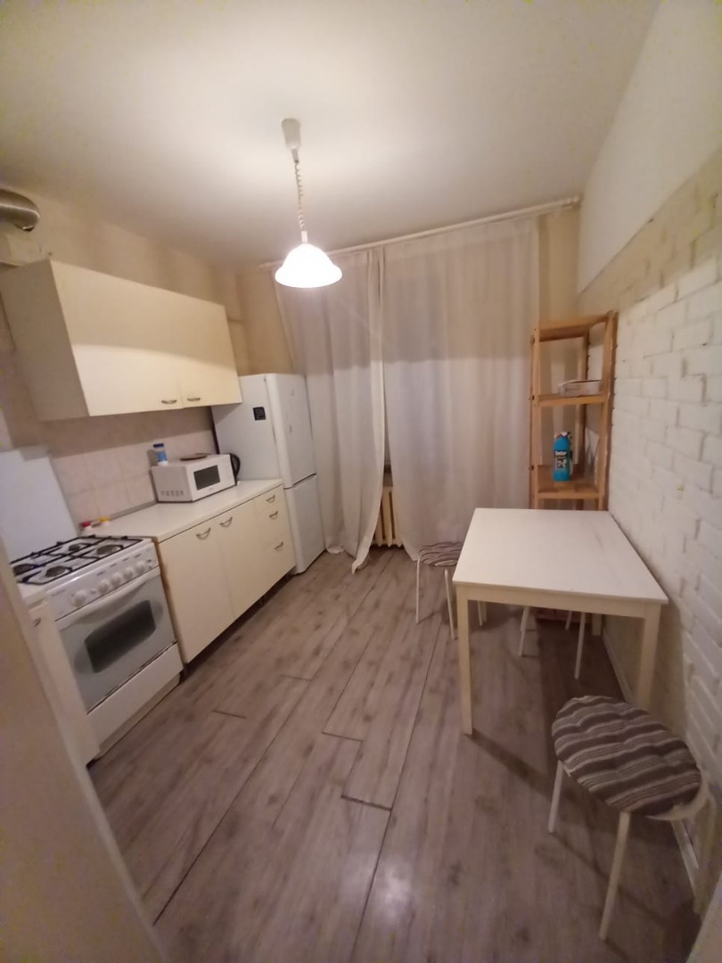 Дом тёплый, ухоженный. Квартира светлая, чистая, с косметическим ремонтом. Комната укомплектована необходимой мебелью. Кухня оборудована бытовой техникой. совмещённый санузел. Соседи приличные, тихие.